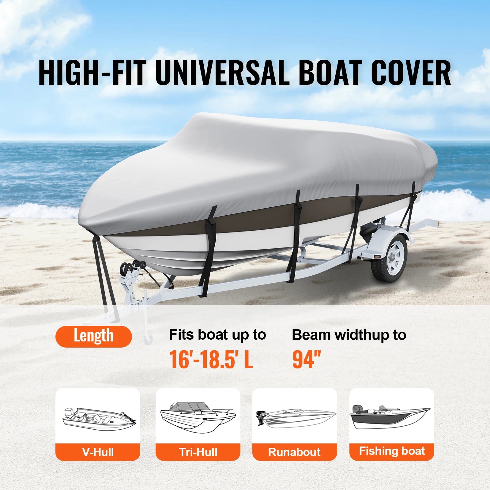 - Perfect Fit: Tailored for boats 16-18.5 ft in length and up to 94 inches wide, ensuring a snug and secure fit for V-hull runabouts and bass boats.